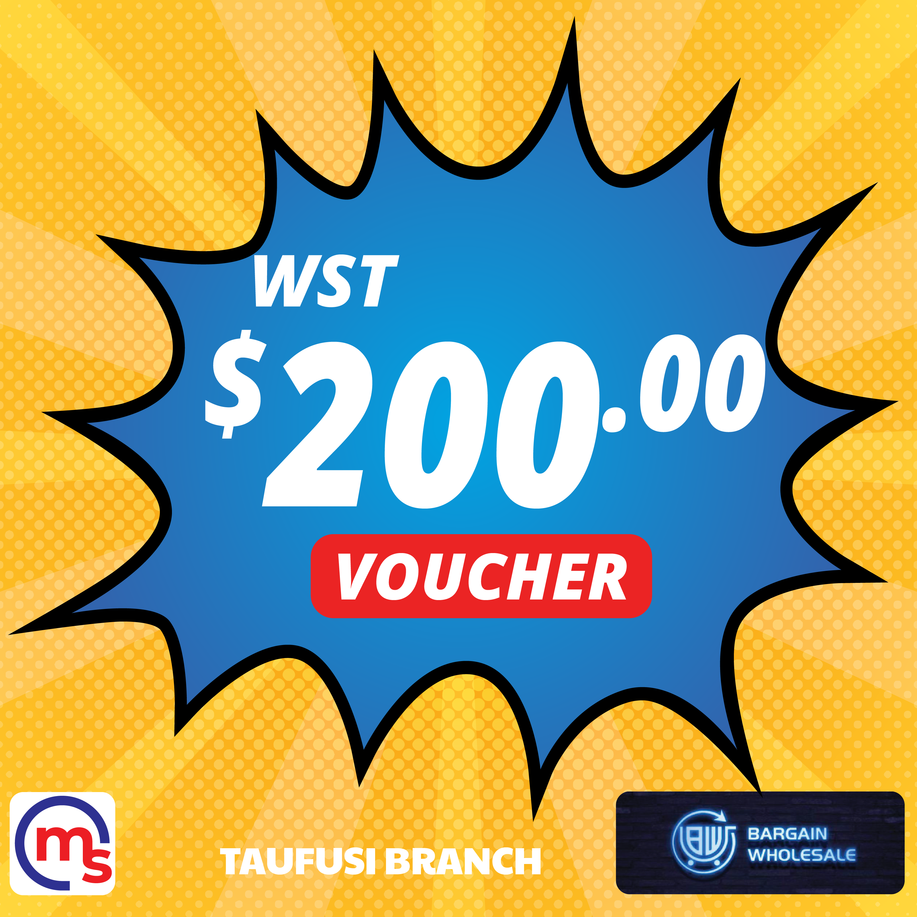 Bargain Wholesale & Supermarket ($200 Tala) Voucher - Redeem at Taufusi, Apia