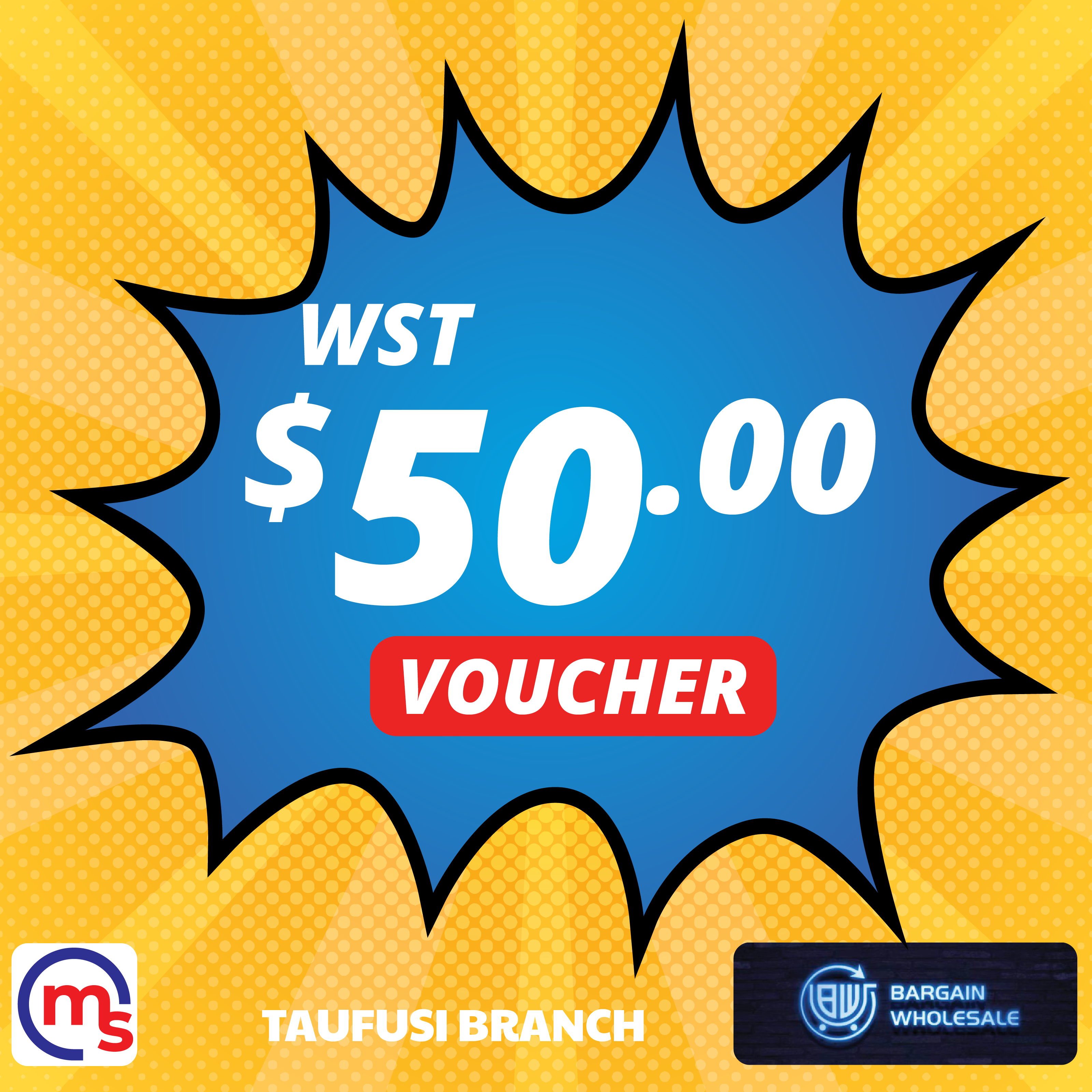 Bargain Wholesale & Supermarket ($50 Tala) Voucher - Redeem at Taufusi, Apia