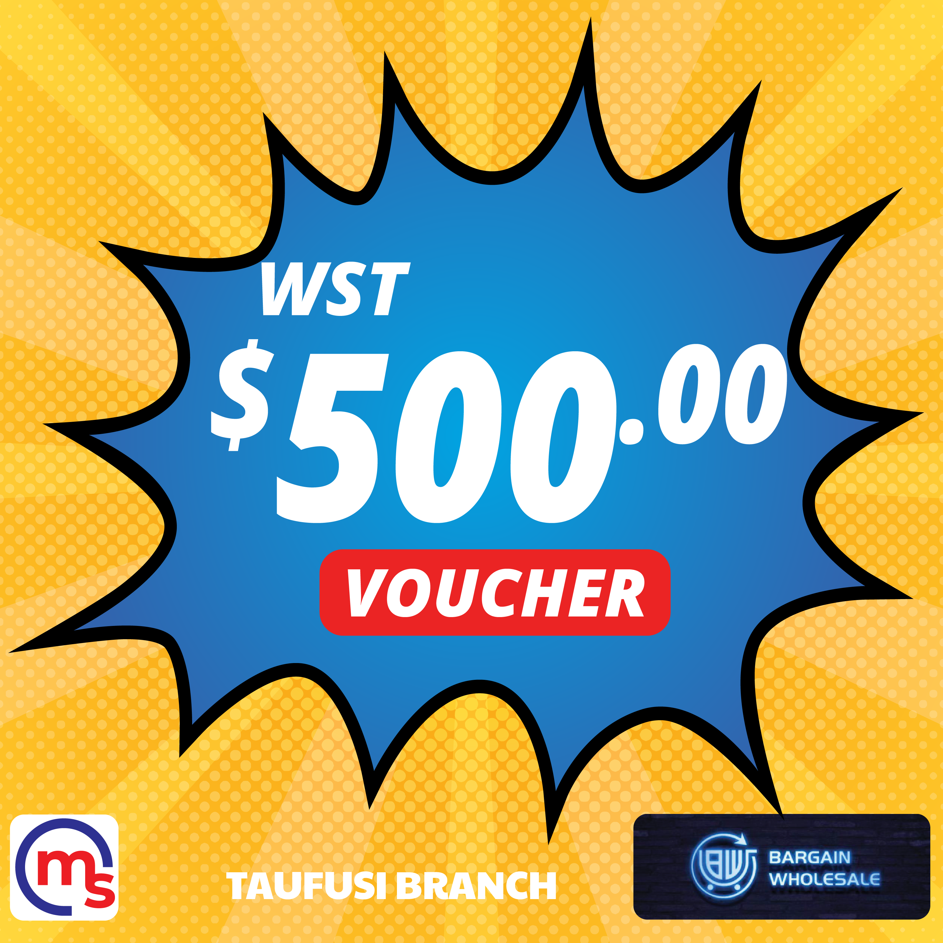 - Valid for purchases at Bargain Wholesale & Supermarket in Taufusi, Apia UPOLU ONLY.