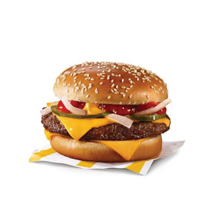 Sink your teeth into our juicy Double Cheeseburger – two perfectly grilled beef patties layered with melted cheese, tangy pickles, onions, ketchup, and mustard on a soft toasted bun. Big flavor in every bite!