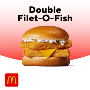 Double up on delicious with our Double Filet-O-Fish – two tender fish fillets, layered with creamy tartar sauce and melted cheese, all served on a soft steamed bun. A seafood favorite with extra satisfaction!