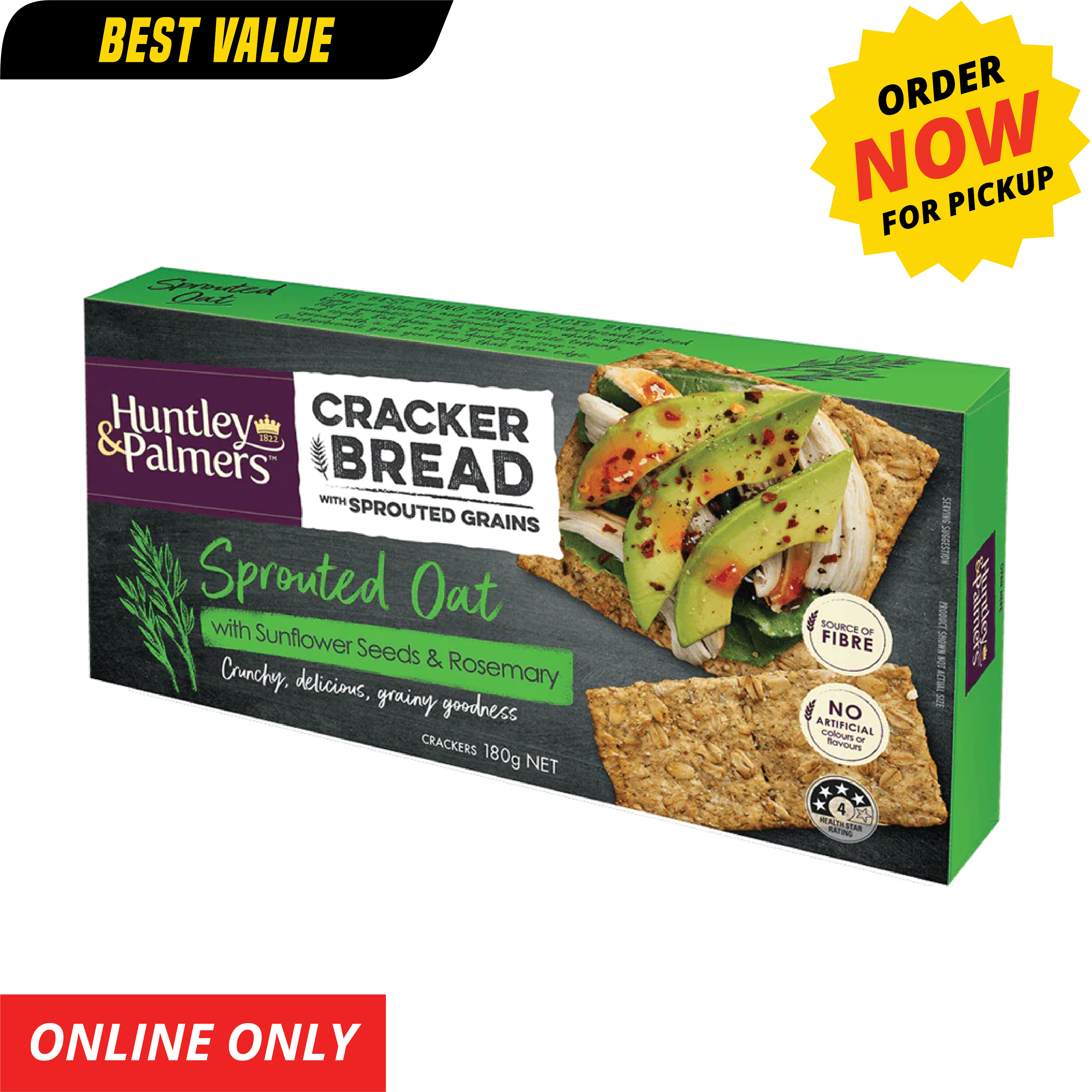 Discover the wholesome goodness of Huntley & Palmers Cracker Bread Sprouted Oats. Made with 100% sprouted oats, this 180g cracker bread is perfect for a nutritious and satisfying snack. Exclusively available at Taufusi, get yours now for a convenient pickup from Bargain Wholesale.