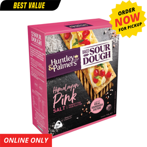 Indulge in the unique flavor of Huntley & Palmers Crackers Baked with sour dough and Himalayan pink salt. Made exclusively for Taufusi, these crackers offer a delicious twist on traditional sour dough crackers. Available for pickup at Bargain Wholesale.