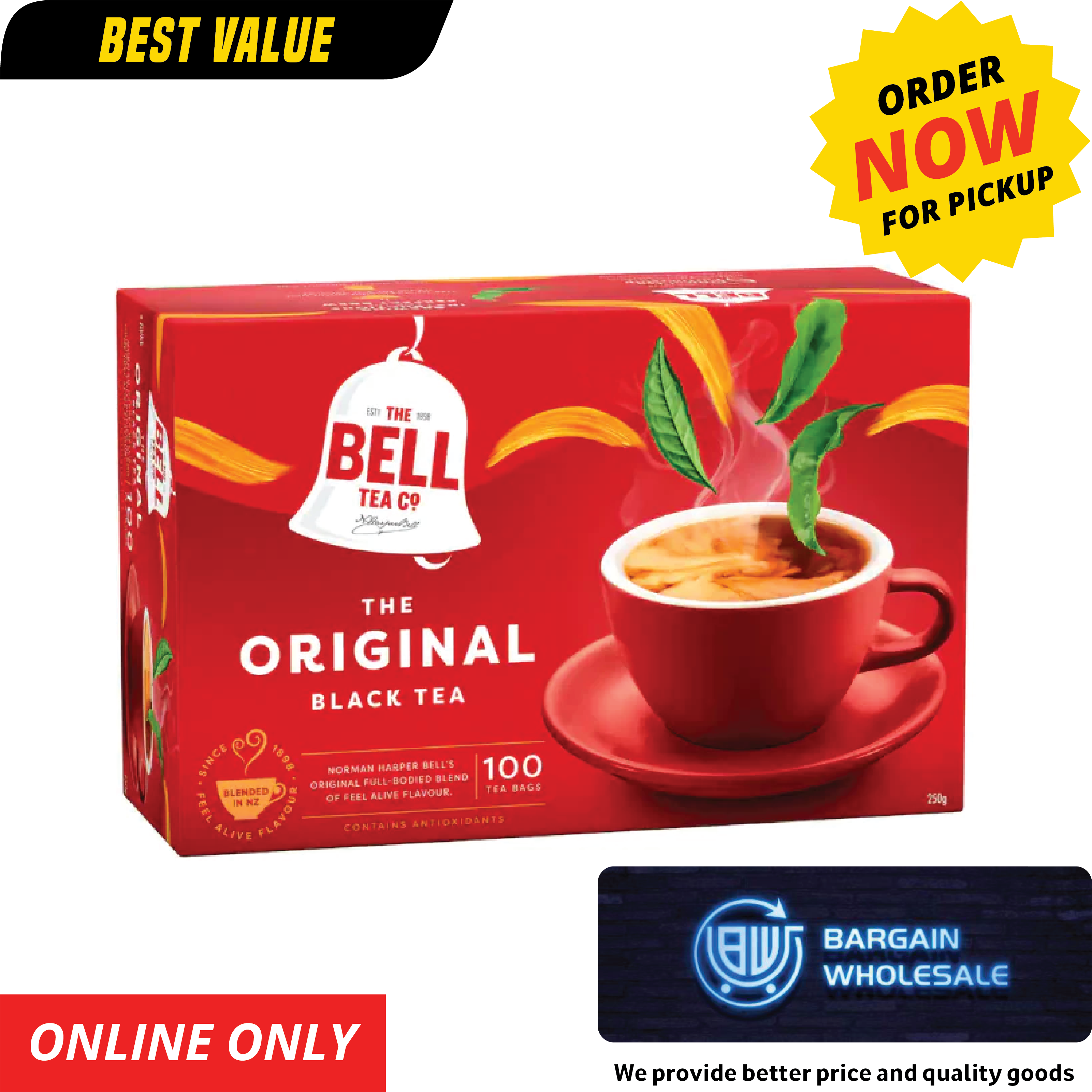 Enjoy the rich and unique flavor of Tea Bell Tea Original, exclusively available at TAUFUSI. With 100 tea bags, you can indulge in a soothing cup of tea anytime. Conveniently pick up from BARGAIN WHOLESALE. Perfect for tea lovers looking for a high-quality and exclusive experience.